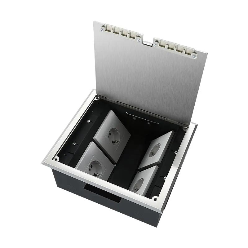 Soket lantai inovatif ini menggabungkan reka bentuk yang anggun dengan fungsi maju, menjadikannya penyelesaian yang ideal untuk ruang moden yang mencari integrasi dan keselamatan yang lancar.